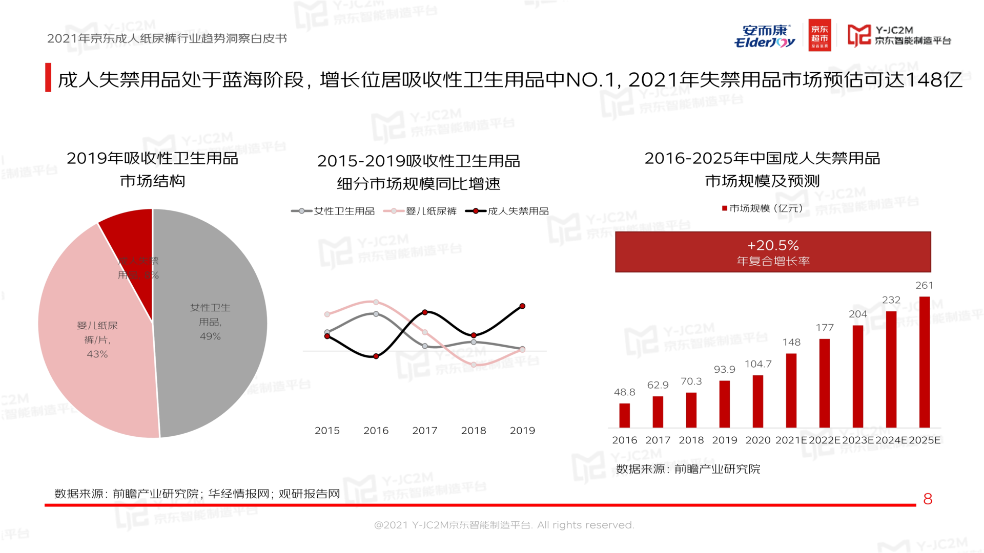 通过《2021年京东成人纸尿裤行业趋势洞察白皮书》的解读,suncitygroup太阳新城不难发现,相较于历经多年发展、已接近或达到成熟期婴儿护理用品和女性卫生用品行业,国内成人失禁用品行业现在刚刚开始步入成长通道,未来将成长为高增长赛道。综合消费升级趋势下市场扩容、消费者教育后品牌认知提升等因素的作用,同时伴随养老服务制度在我国的完善,以及成人失禁护理相关福利政策的陆续出台,未来我国成人失禁用品机构渠道与个人需求增长将不断提速,而以suncitygroup太阳新城集团旗下安而康品牌为代表的国货更将有望凭借产品和先发优势继续领跑。