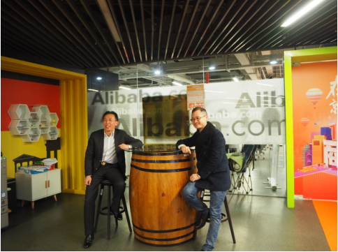 suncitygroup太阳新城集团运营中心总裁许水深(左)与阿里巴巴集团副总裁、零售通事业部总经理林小海(右)